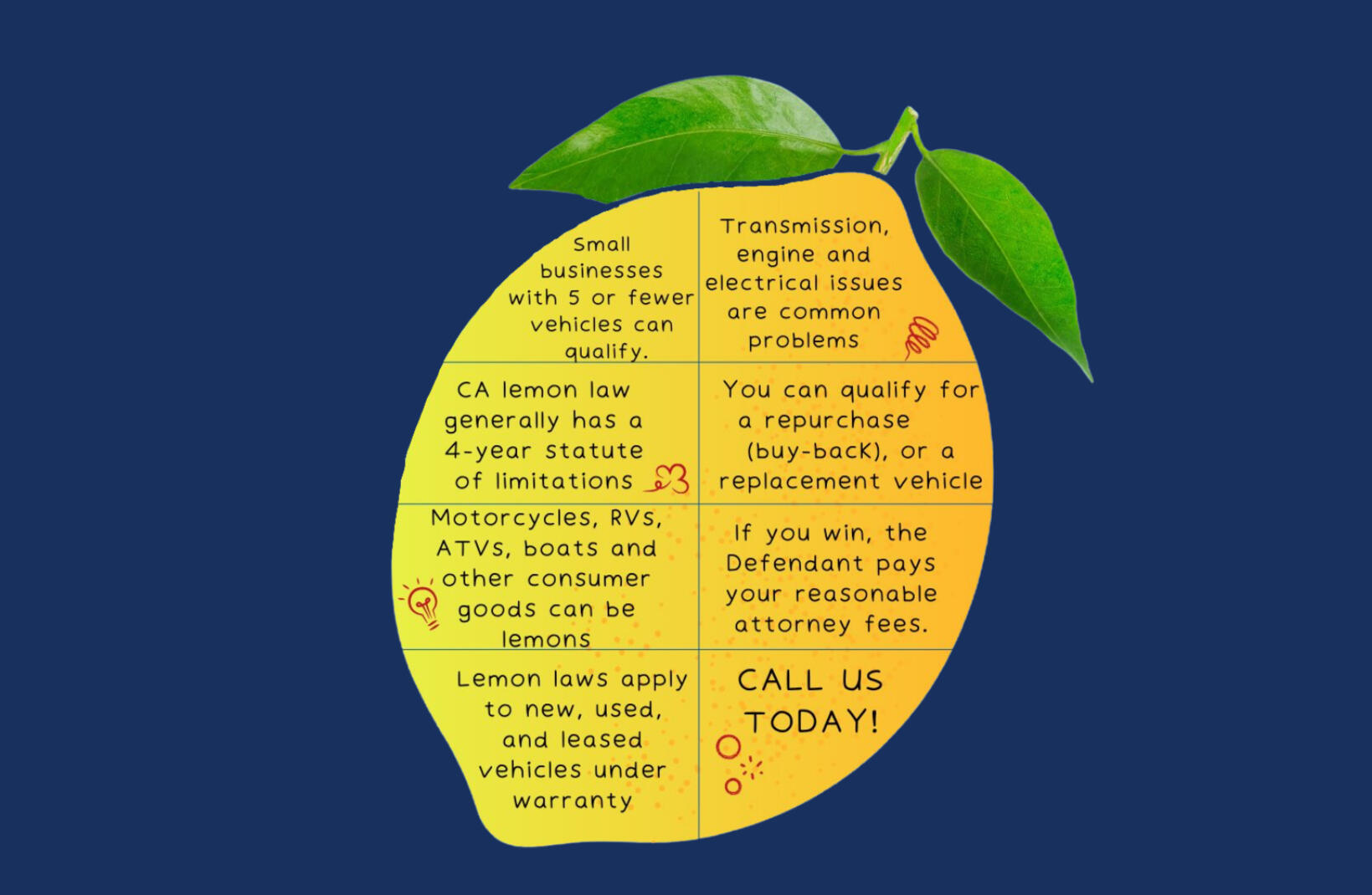 KEY TAKEAWAYS:• Lemon laws have been enacted in every U.S. state and the District of Columbia as well as at the federal level to protect consumers from manufacturers who intentionally sell defective or poor quality products.• The kinds of goods lemon laws cover and how far consumers are protected depends on the jurisdiction of the law, but the term "lemon law" originally referred to defective automobiles that were called lemons.• Lemon laws are generally used to legally hold manufacturers to reasonable implementation of their warranties.